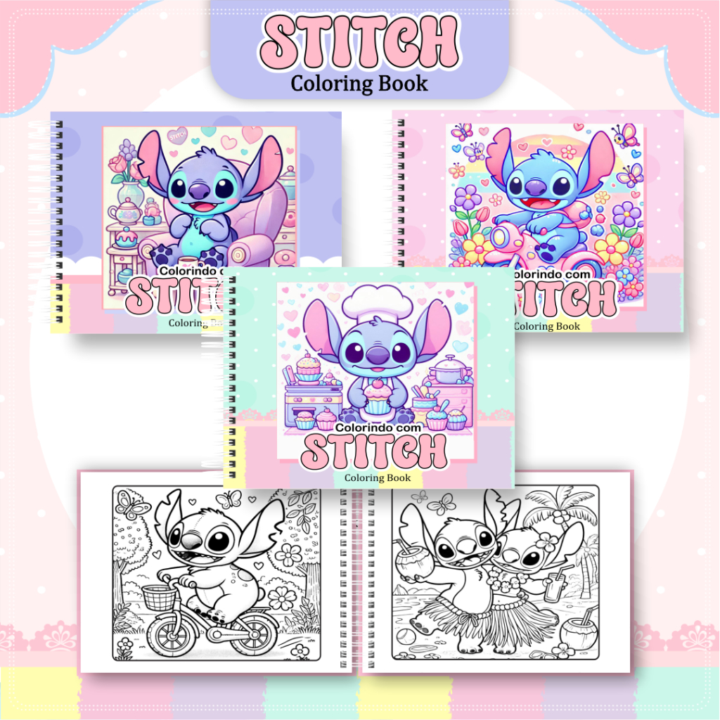 Livro STITCH para colorir - CAPA DURA - 60 folhas 150g ESCOLHA A COR DA CAPA- LAMINAÇÃO HOLOGRAFICA