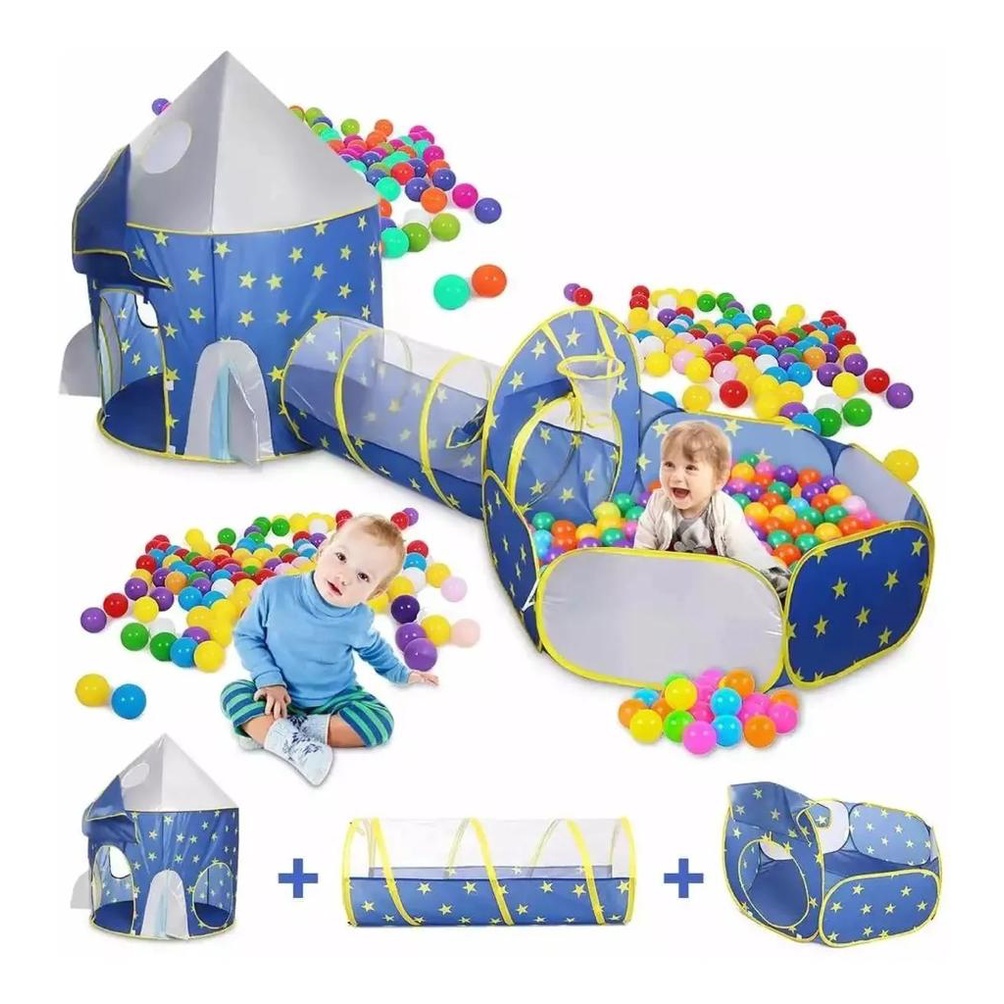 Barraca Toca Tenda Infantil Tunel 3x1 com Piscina Para Bolinhas Principes E Princesas Astronaltas com Cesta Basquete Playground Brinquedo