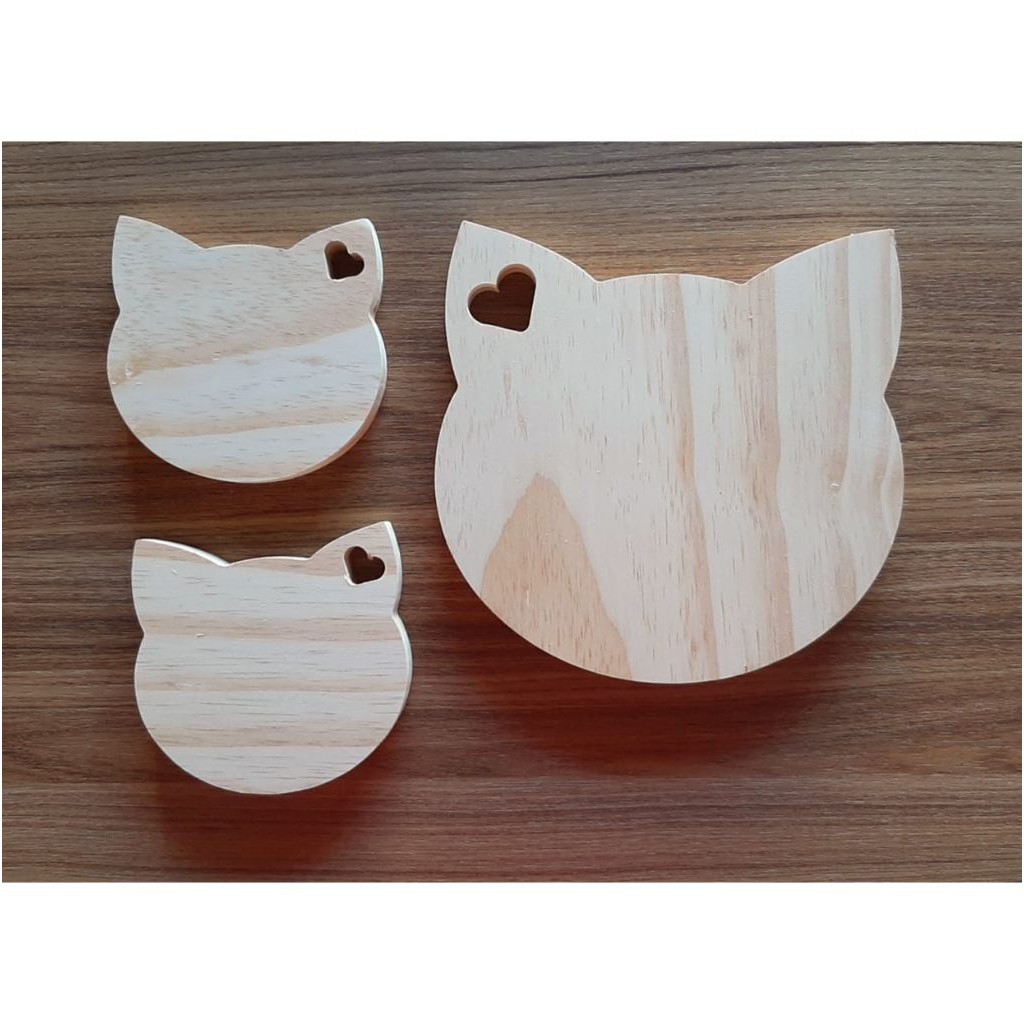 Kit tábua mais 2 porta copos Gatinho em madeira pinus