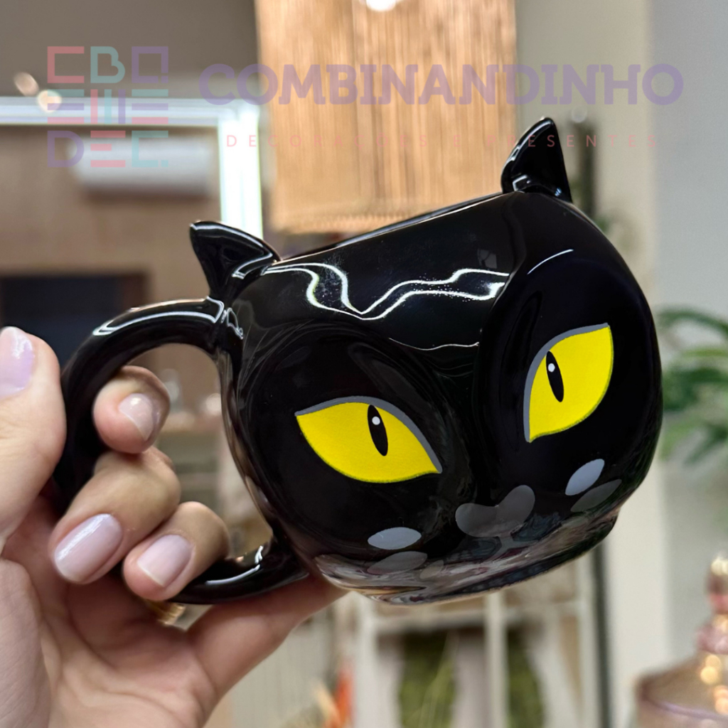 Caneca gato preto xícara grande 3D gatinho fofo decoração