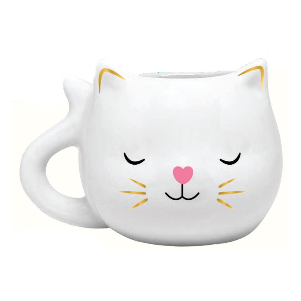 Caneca Decor Ceramica 380 ml de Gato Gatinho Rosa Fofo Xícara 3d Nariz Coração Fofinho Animais Pets
