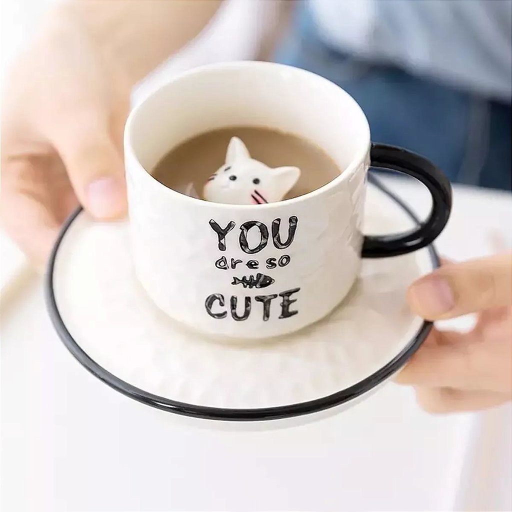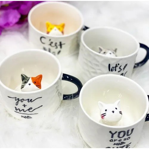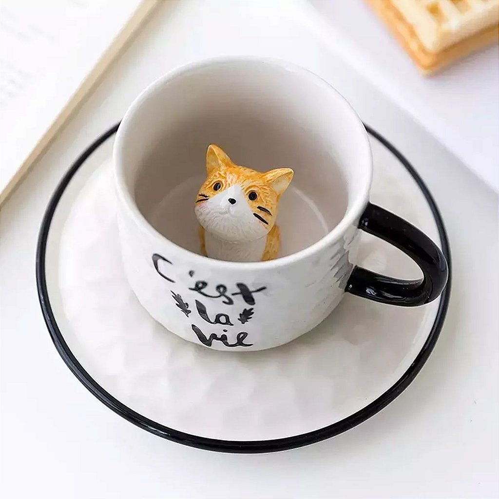Caneca Cerâmica 220ml Com Gato 3d Xícara Café Leite Chá Gatinho Dentro