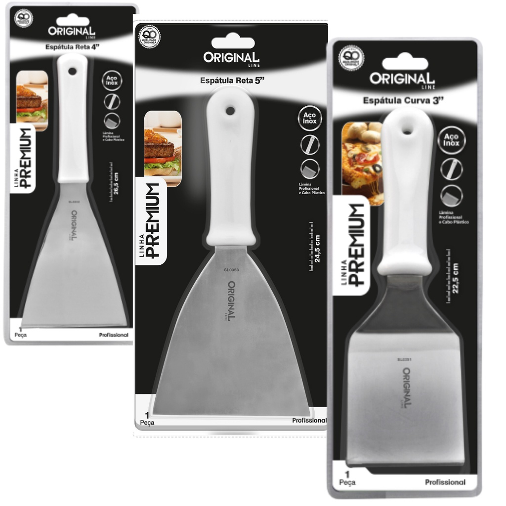 Kit Espátulas Inox Lanche, Pizza, Hambúrguer Reta E Curva Kit Chapeiro, Cozinha, Kit Lanches, Kit Hambúrguer Chapa Profissional Cabo Branco