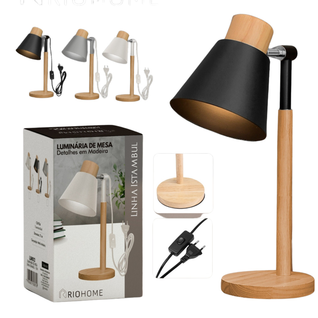 Abaju de Mesa com base em madeira para cabeceira de cama Criado mudo