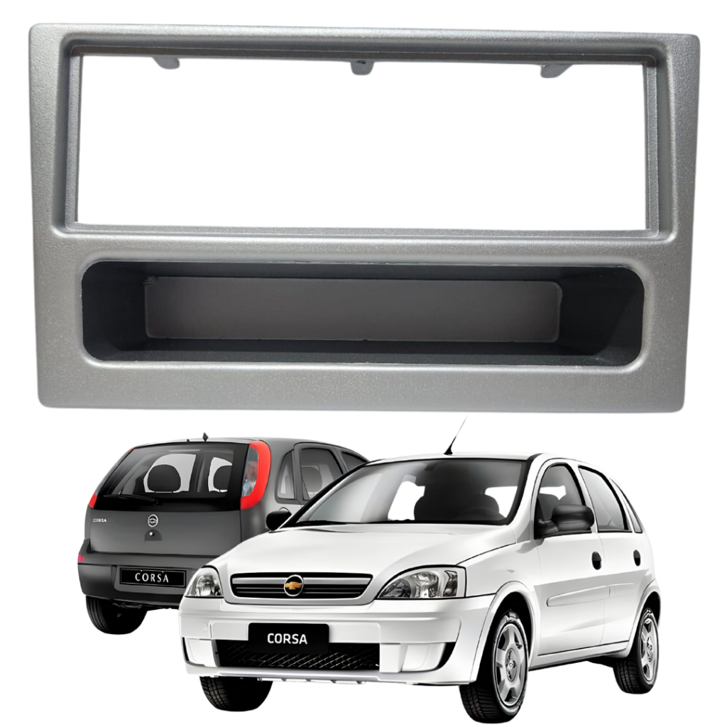 Moldura Painel Radio 1 Din Prata Com Porta Objetos Chevrolet Corsa 2002 2003 2004 2005 2006 2007 2008 2009 2010 2011 12