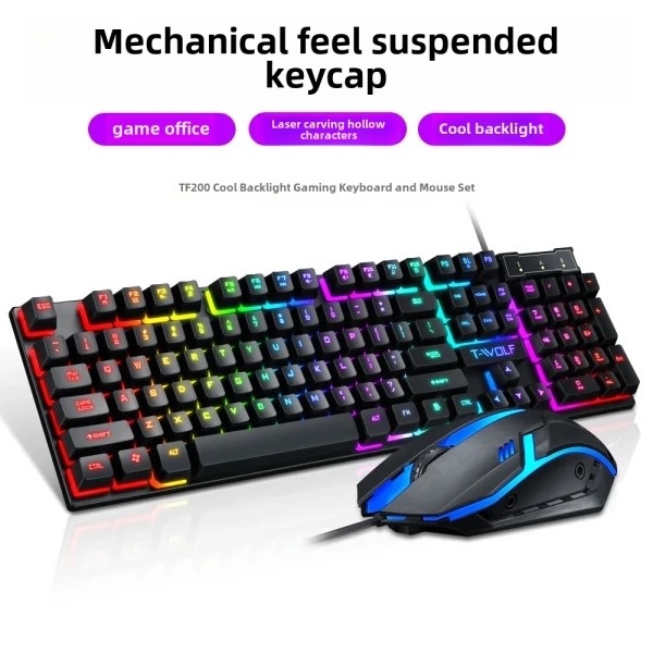 Kit Teclado Semi Mecânico Gamer e Mouse Gamer RGB - AOAS
