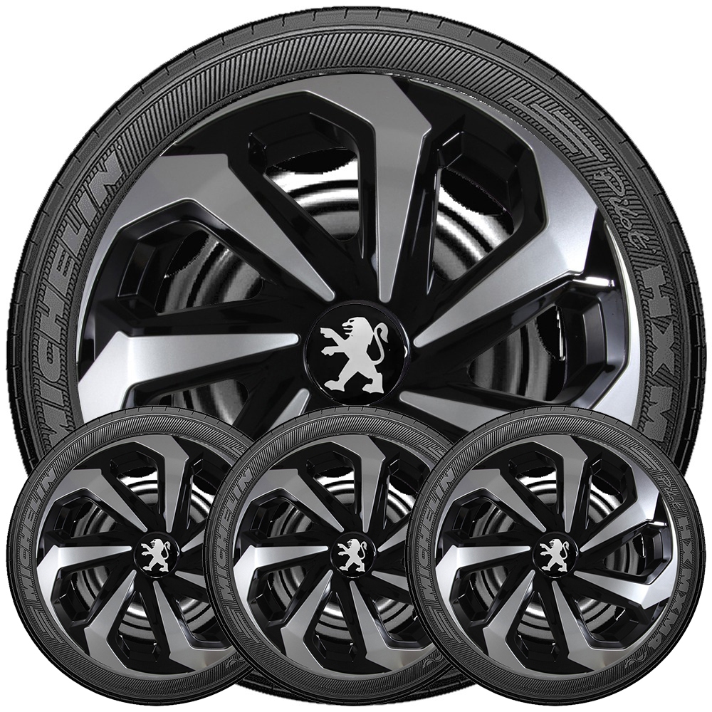 Jogo 4 Calotas Ds4 Aro 14 Preta Prata Peugeot 206 207 208 307