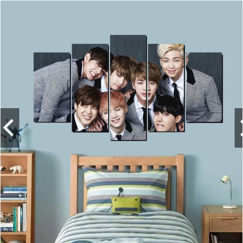 Quadro conjunto mosaico 5 peças BTS abstrato moderno painel para decoração de ambientes