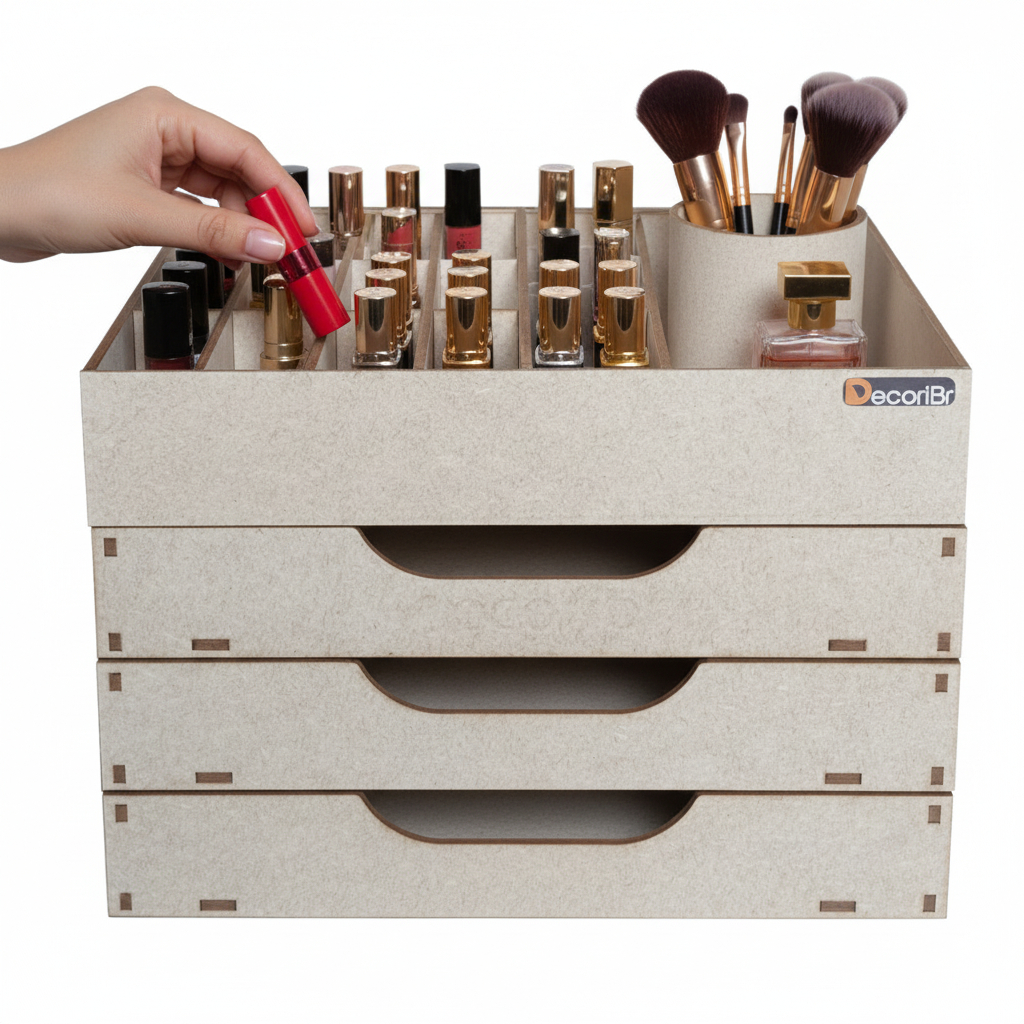 Organizador Caixa Porta Maquiagem Make Batom com Divisórias e Gaveta Em MDF 3mm - Decori Br
