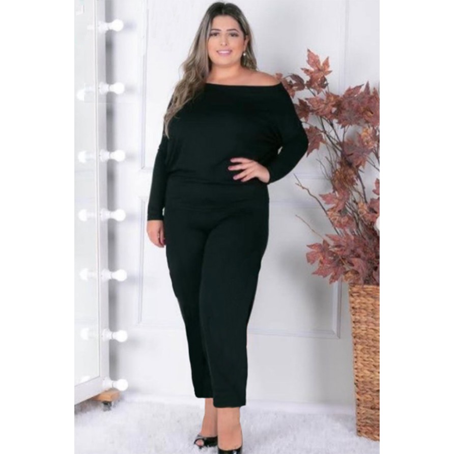 Conjunto Malha Preto Viscolycra Plus Size Tamanho G1 G2 G3 G4 Gordinha Moderno Conjuntinho Moda Blogueira