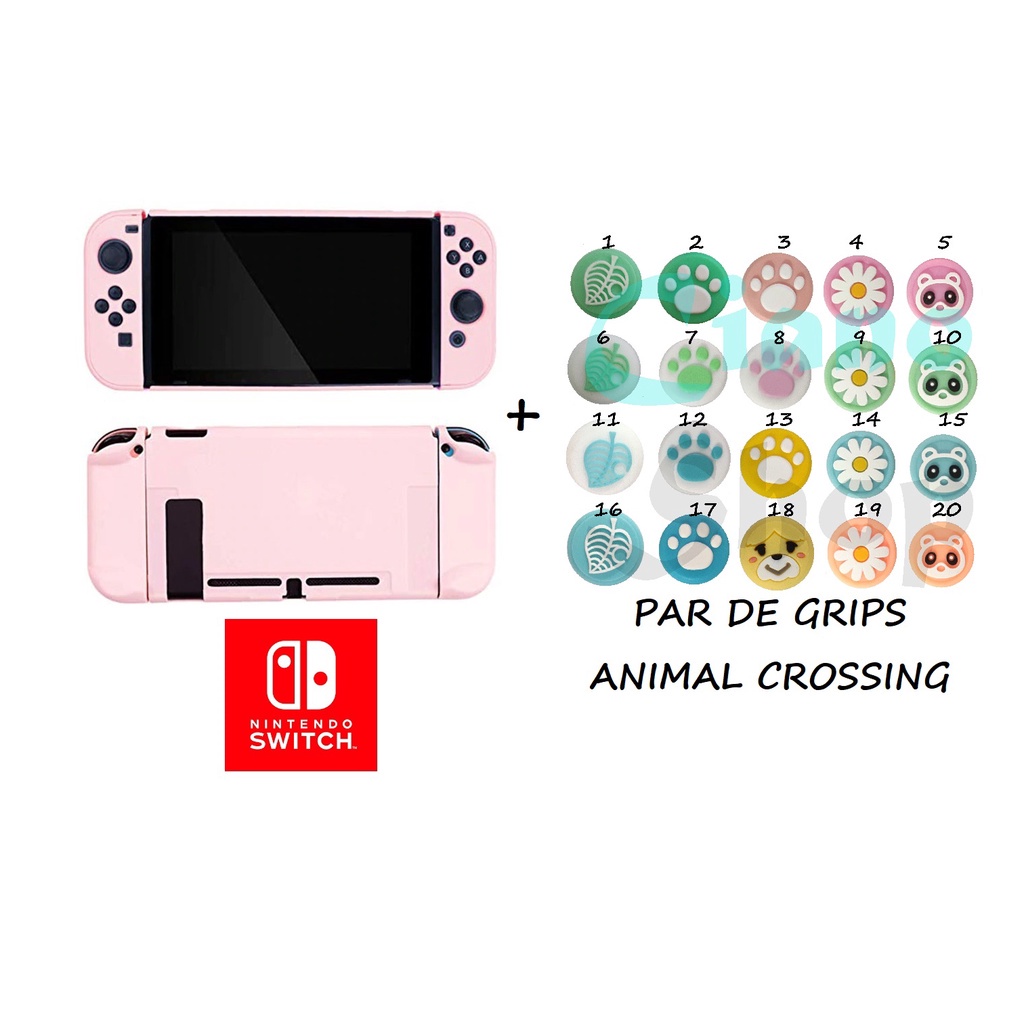 KIT CASE ROSA + GRIP ANIMAL CROSSING NINTENDO SWITCH CAPA