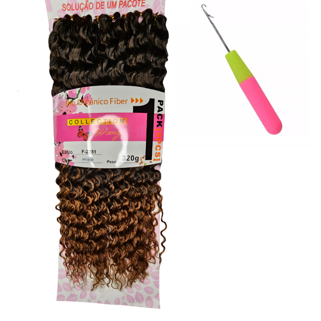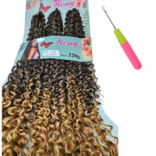 Completo Cabelo Organico Cacheado + Agulha de Crochet Braids 320g