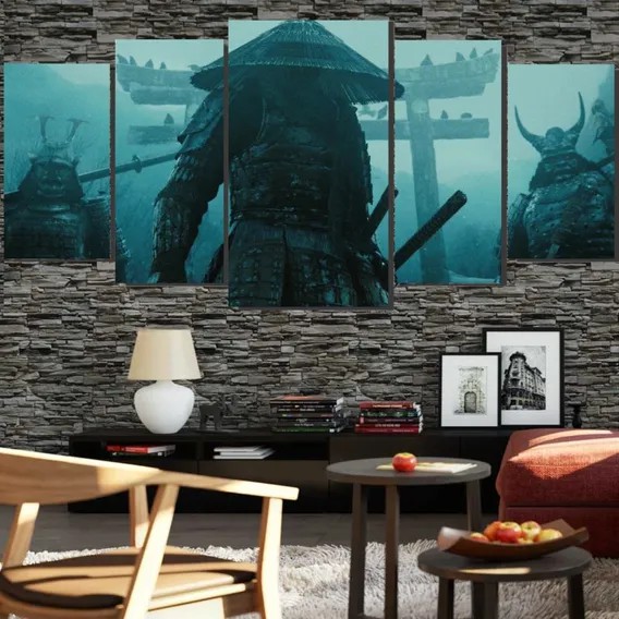 Conjunto de Conjunto de Quadros Decorativo 128x60 Samurai Sombrio Promoção Lindo N Move = 1418