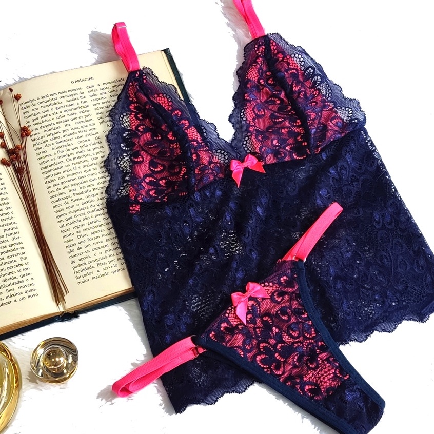 Conjunto Lingerie Sensação Renda Lindo Alças Reguláveis CLSR0040