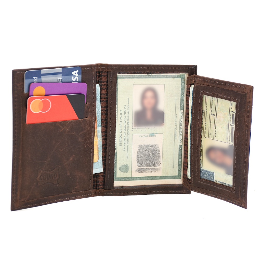 Carteira Masculina de Couro Legitimo Porta Cartão, Cnh, Dinheiro Slim