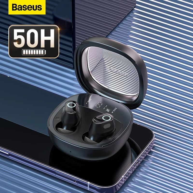 Baseus WM02 + Fones De Ouvido Sem Fio TWS Bluetooth 5.3 Display Inteligente Carga Rápida 50 Horas Vida Útil Da Bateria Longa
