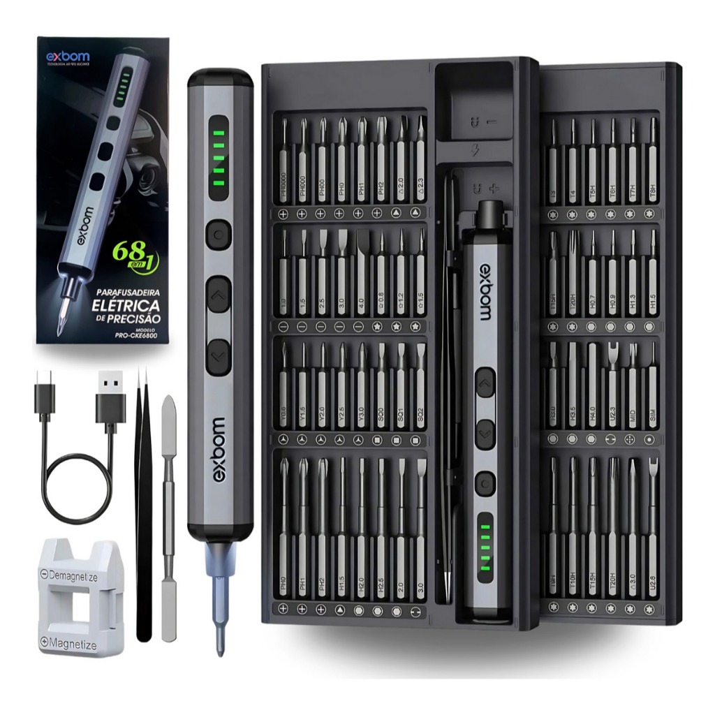 Chave de Fenda Elétrica/parafusadeira Recarregável Sem Fio Precisão 68 Em 1 Magnética 28 Em 1 EXBOM
