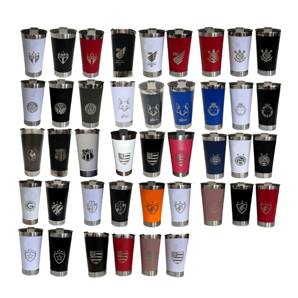 Copo Térmico Cerveja Personalizado Brasil Times com Tampa e Abridor 473ml Corinthains Flamengo Sao Paulo Palmeiras
