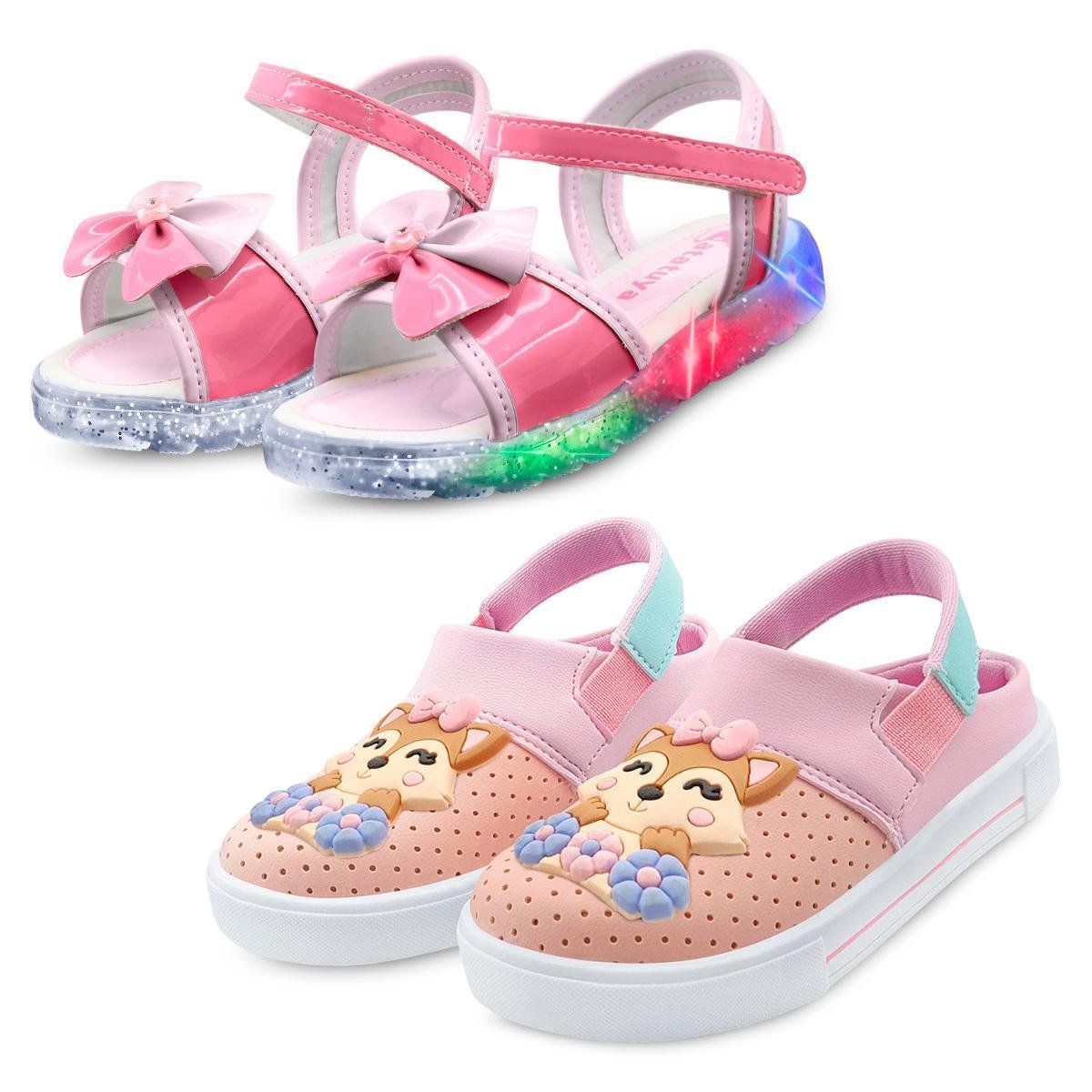 Kit 2 Pares De Sandália Led e Babuche Infantil Menina Mz Shoes