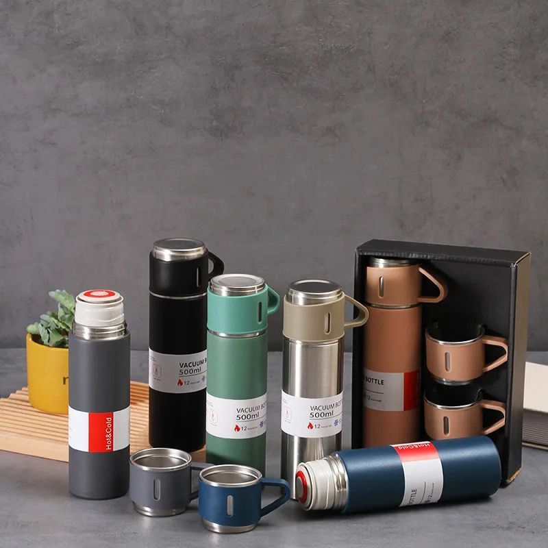 Kit 1 Garrafa + 3 Xícaras Squeeze Fosco Térmica Aço Inox Com Copo Stainless Steel copo térmico