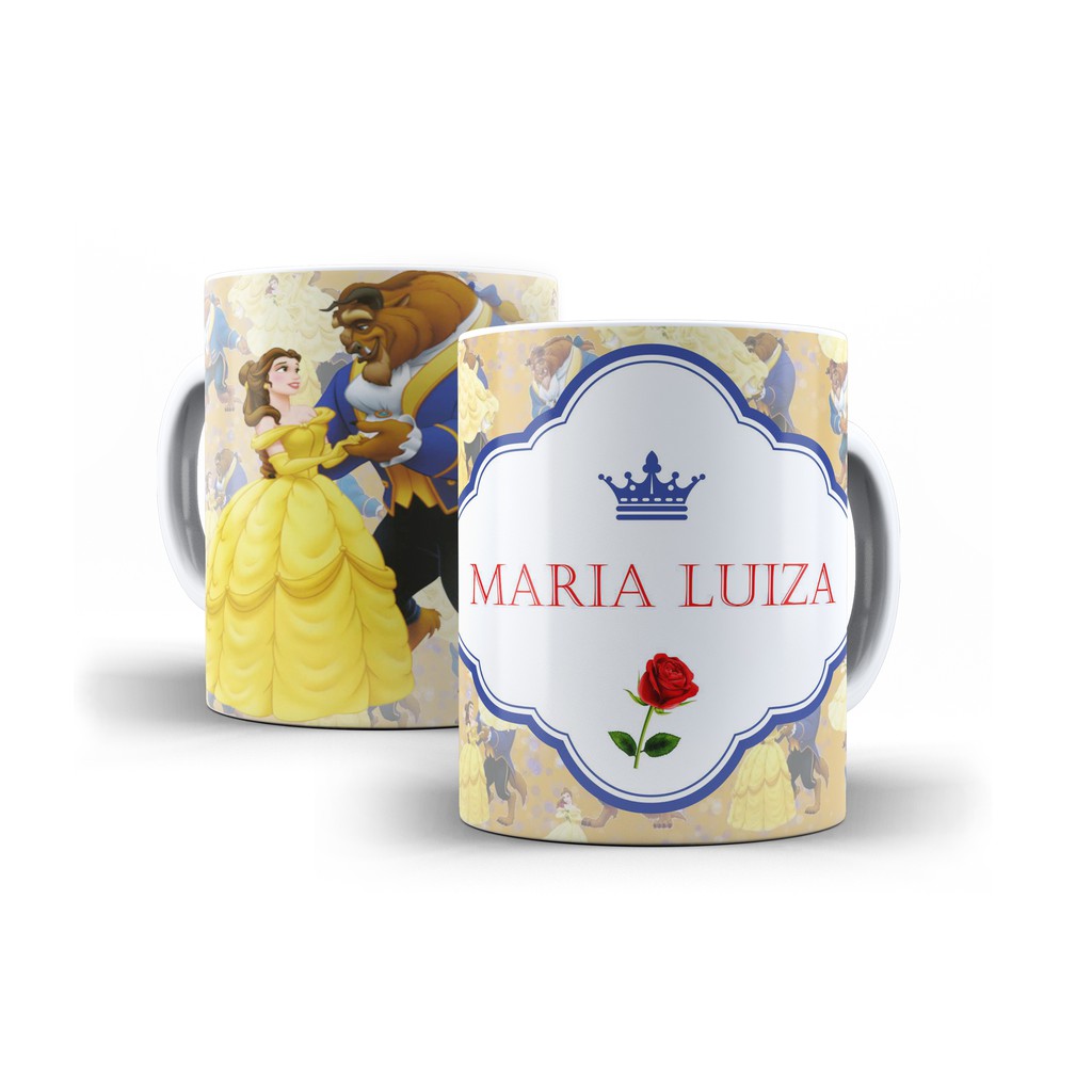Caneca A Bela e A Fera Personalizada com o nome 325ml Princesas Aniversário cerâmica cozinha