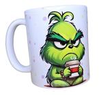 Caneca xícara Copo de Porcelana Cerâmica Personalizada Grinch Aguento muito e ainda sou Simpatica