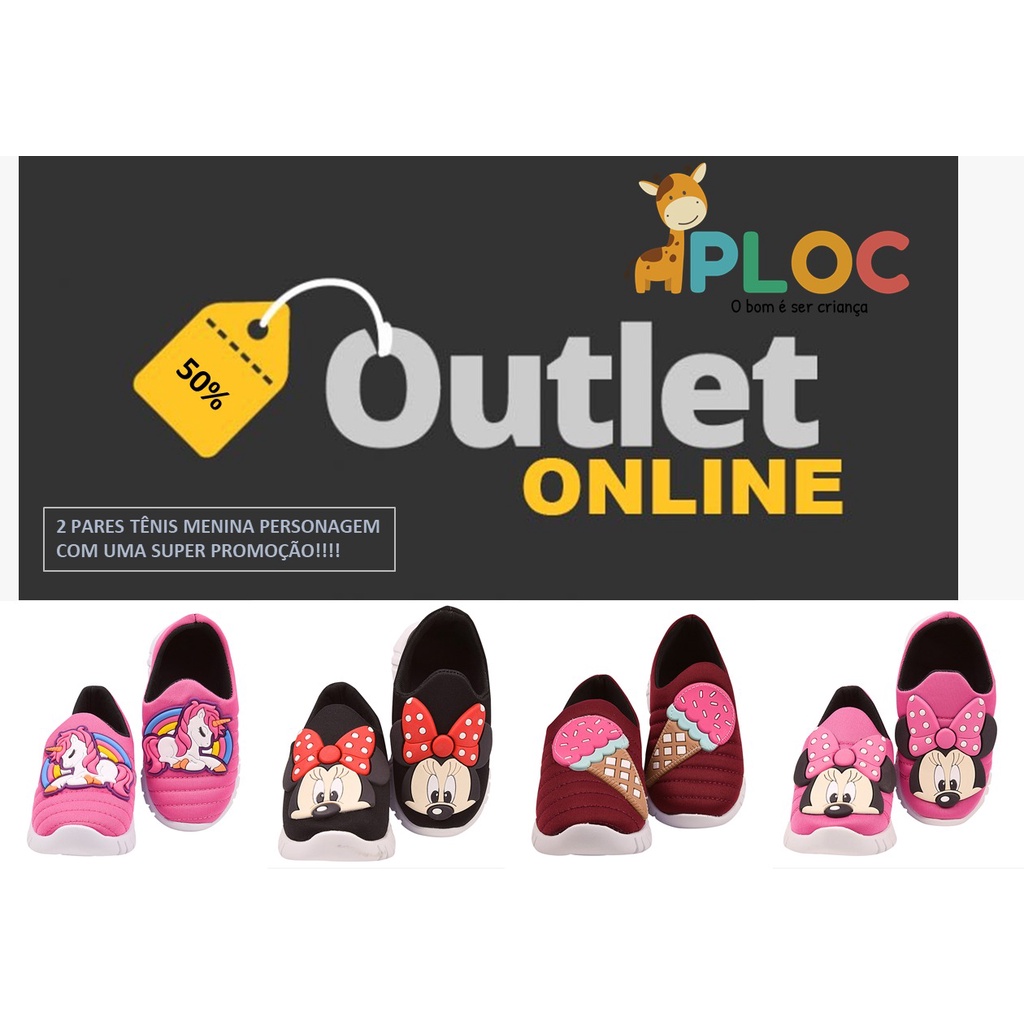 KIT 2 PARES OUTLET (SORTIDO) Tênis Infantil Menina Meia Calce Fácil Leve Flexível Confortável Anatômico PLOC - OUTLET MENINA
