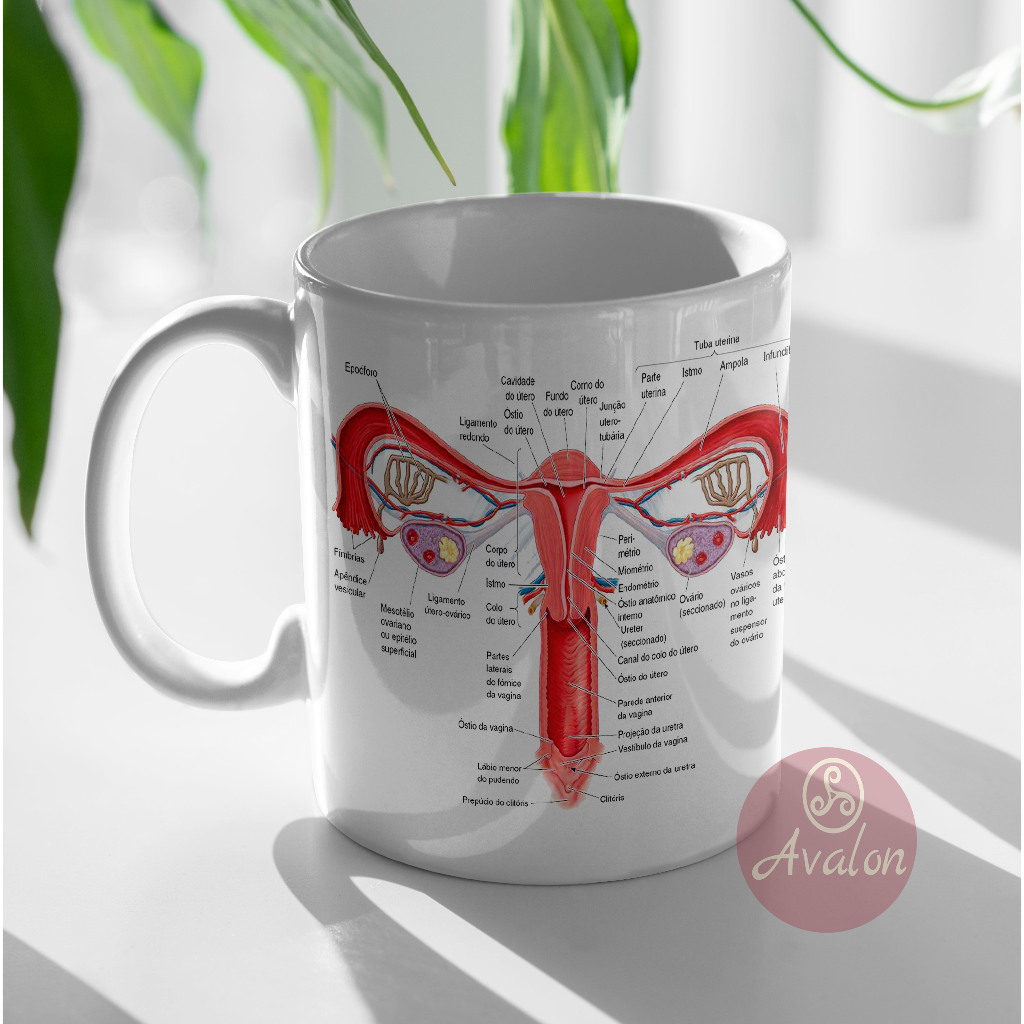 Caneca Xícara Medicina Útero Corpo humano com caixinha de presente