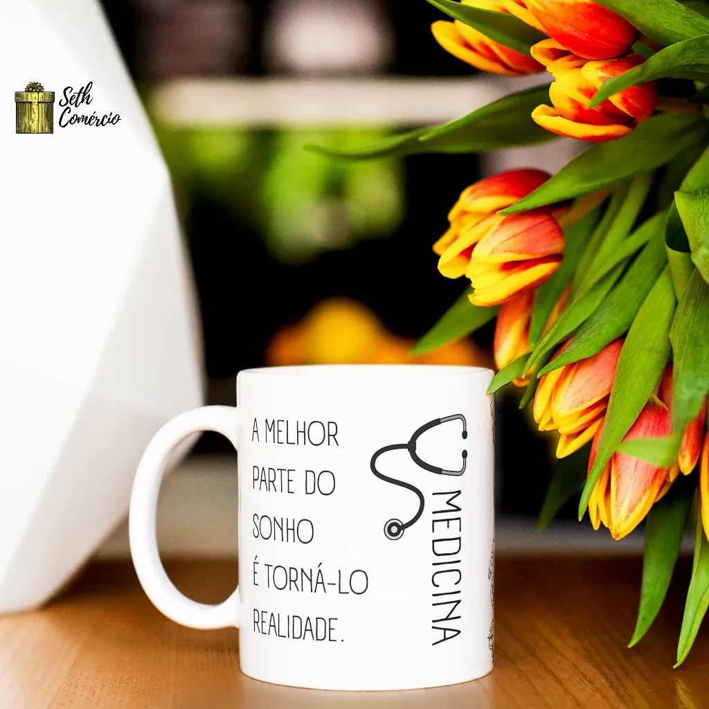 Caneca Porcelana Sonho Medicina Presente Natal Amigo Medico