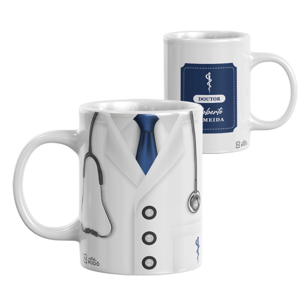 Caneca Personalizada Presente Médico com Nome Profissão Medicina Doutor Jaleco Azul