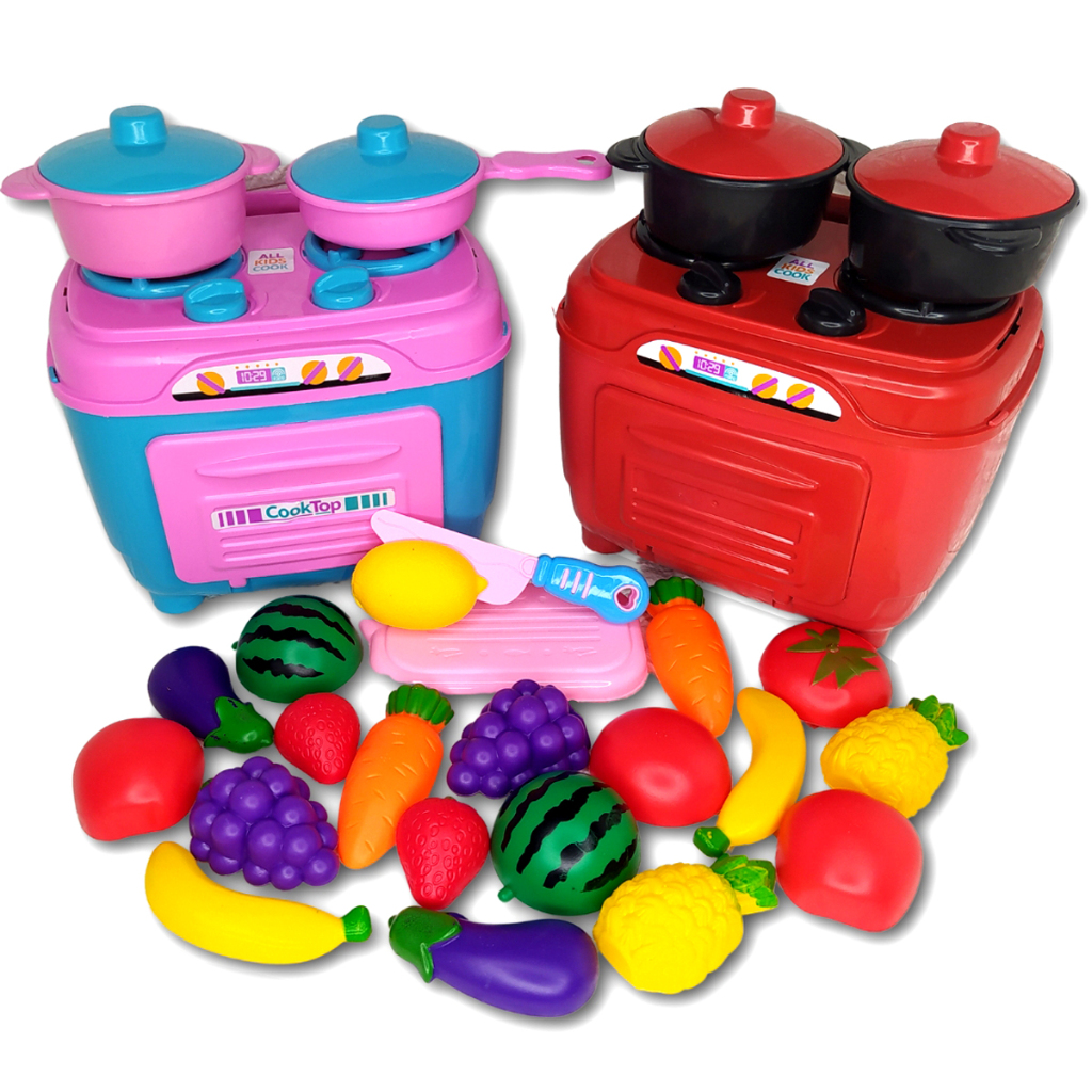 Kit Cozinha Faz De Conta Brinquedos Menina Frutinhas De Cortar Cozinha Infantil Completa Fogão + Comidas + Frutas e Legumes Promoção Dia Das Crianças Fogãozinho Forno Panelinha