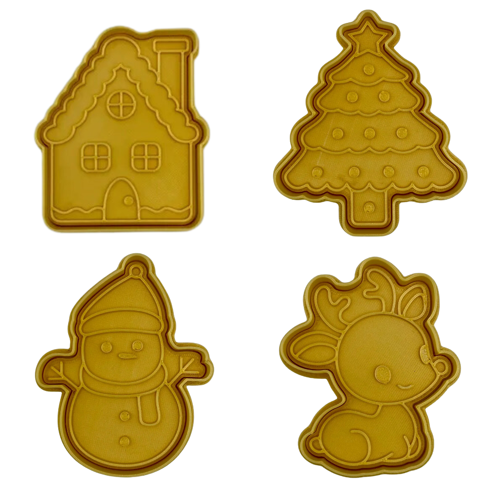 Cortador de Biscoito com Carimbo - Natal Kit 1, Arvore, Rena, Boneco de Neve, Casinha