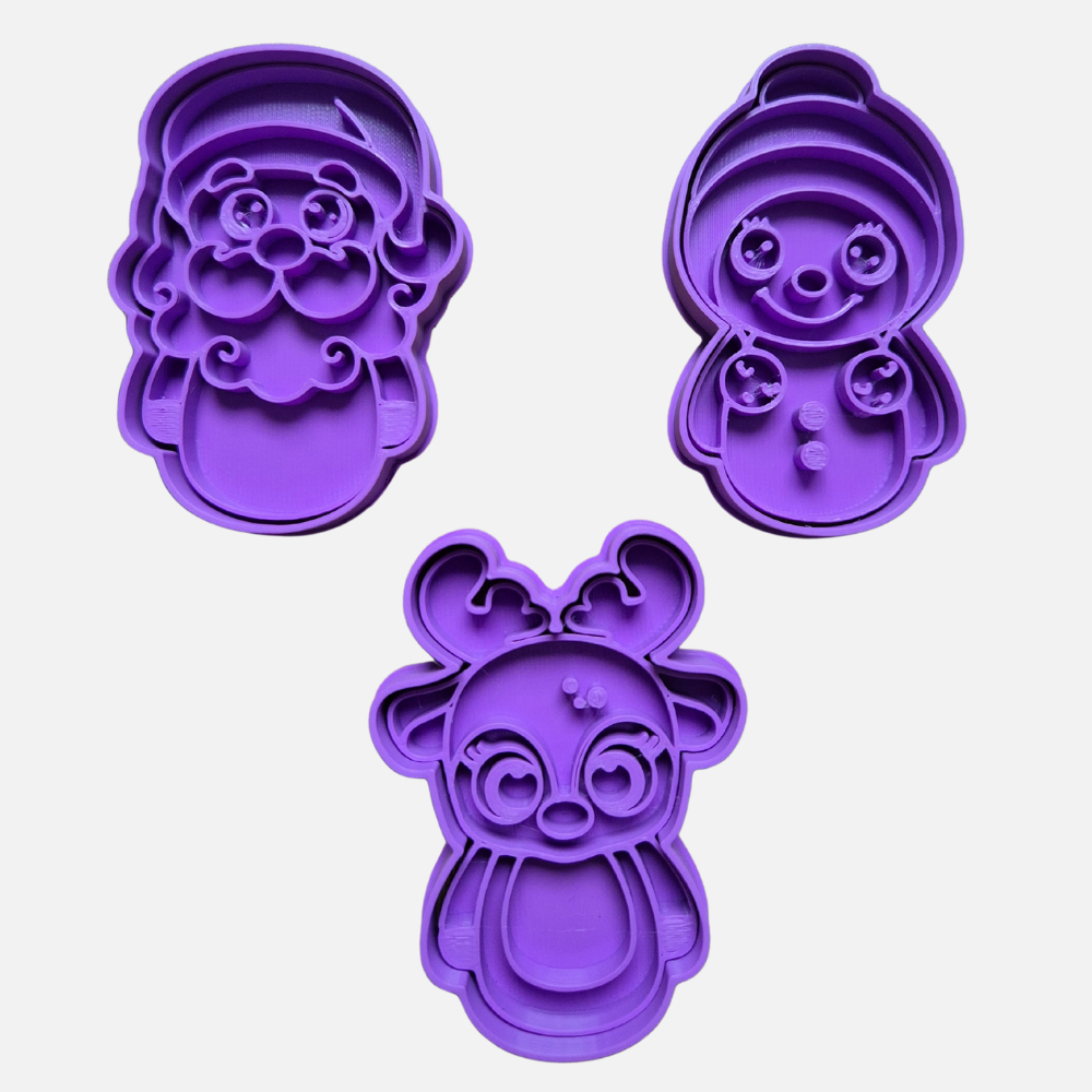 Cortador de Biscoito com Carimbo - Natal Kit 3 Papai Noel, Rena, Boneco de Neve