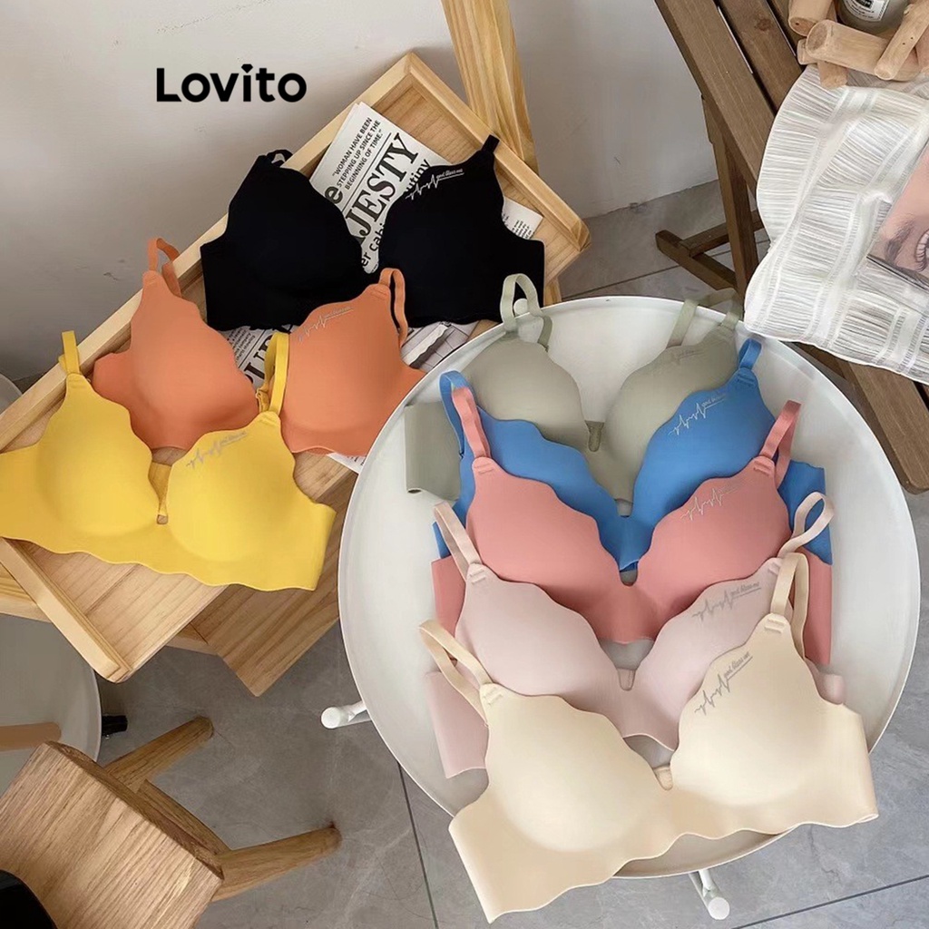 Lovito Bralette Casual Com Estrutura Lisa E Gola Com Babados Para Mulheres LNE29452 (Rosa Claro/Branco/Preto)