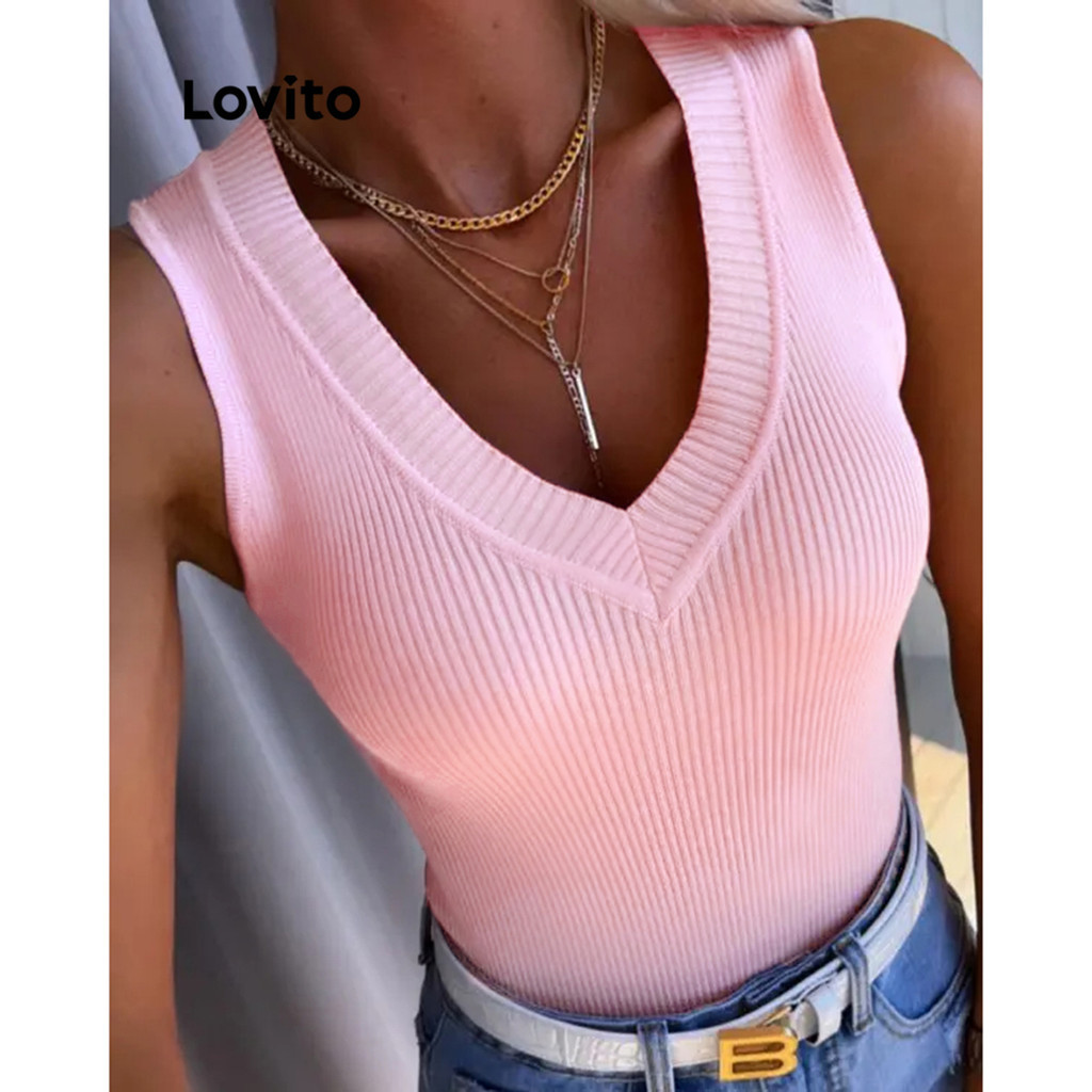 Lovito Regata Casual Com Gola Lisa E Contraste Para Mulheres LNL45011