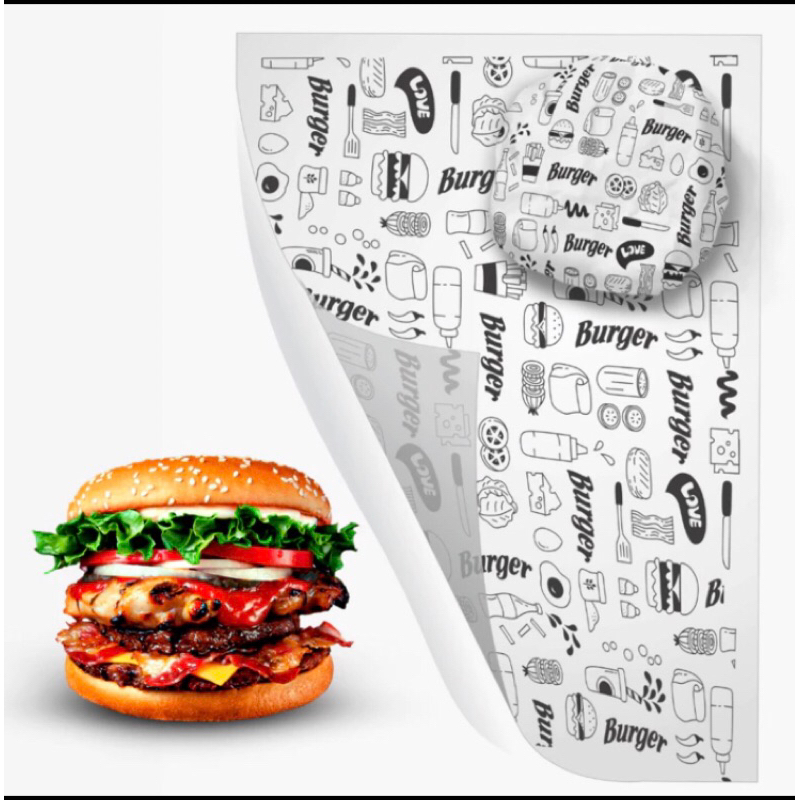 Papel Acoplado Térmico c/ 500 unidades Tamanho 30x48cm - Hamburguer Burger Lanche Embalagem para Lanche 1000 unidades 1500 unidades
