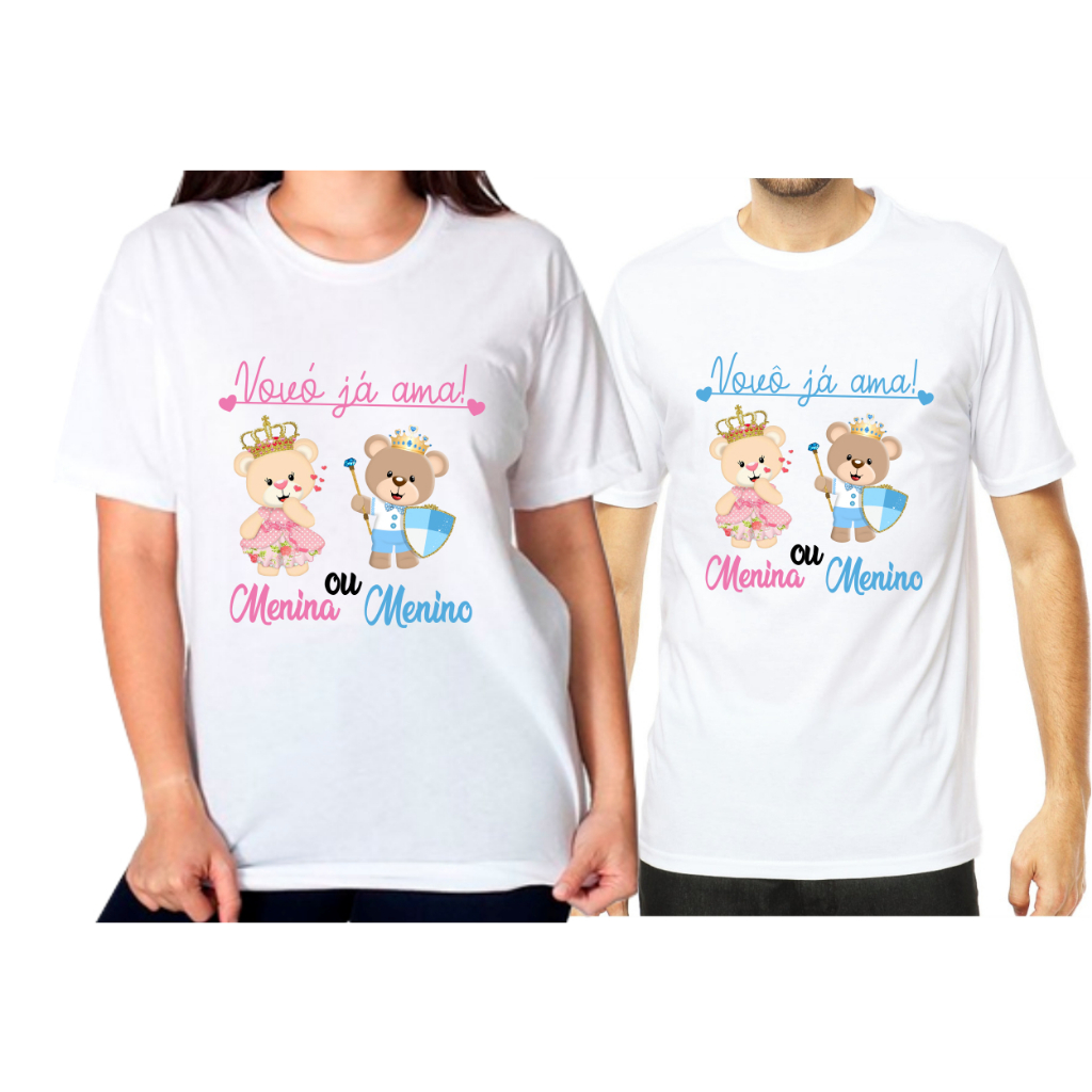 Kit 2 camisetas chá revelação vovó e vovô já amam ursinhos rosa e azul claro