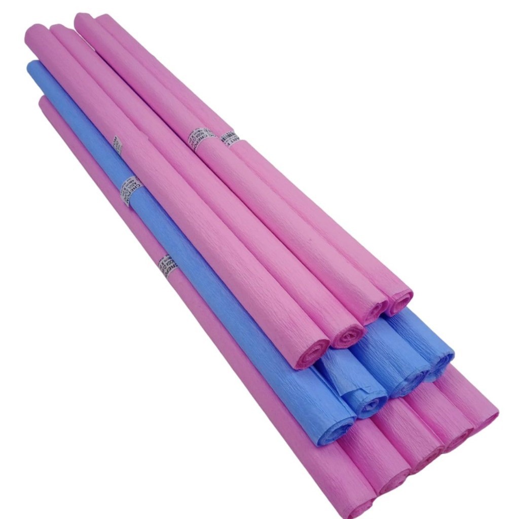 Kit 10 Papel Crepom Com 48cm X 2metros Chá Revelação Bebê Azul e Rosa
