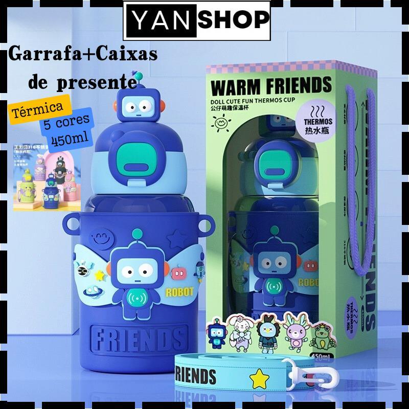 Garrafa /copo térmica Com adesivos Canudo 450ml aço inox para infantil com desenhos animados para presente/ 5