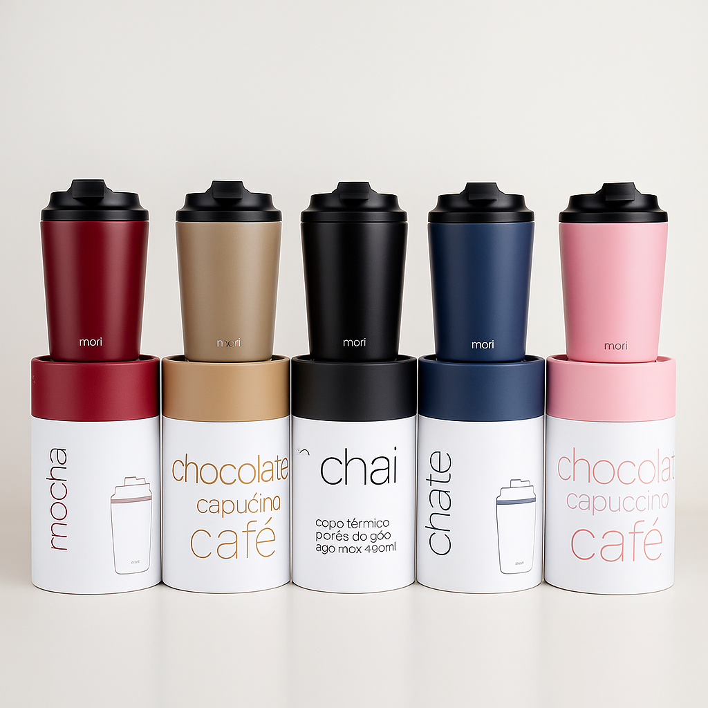 Copo Térmico Mori Para Presente Duplo Inox Com Tampa Não Vaza 240ml Preto Rosa Azul Vinho Creme Mantem a Temperatura