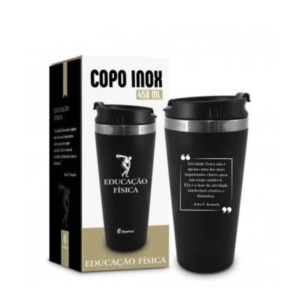 Copo Térmico Profissões Educação Física 450ml Preto Fosco Brasfoot