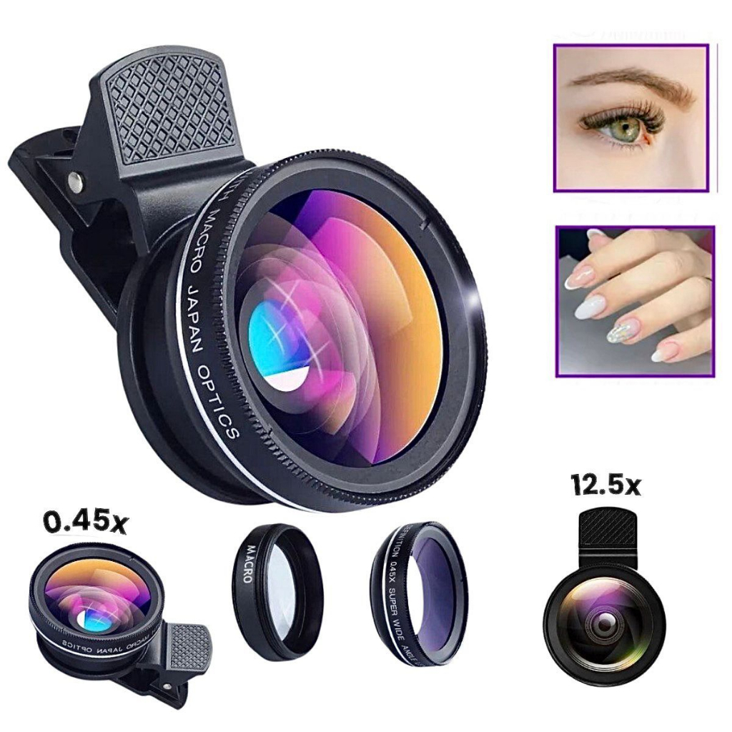 Lente Celular Super Ângulo Amplo 0,45x e Macro 12,5x Detalhes Sobrancelhas Olhos Cílios Íris Unhas Zoom Personal Beauty Lente Grande Angular 2 em 1 Universal Compativel Apple Samsung Celular Smartphone Tablet Original Fotos com Qualidade