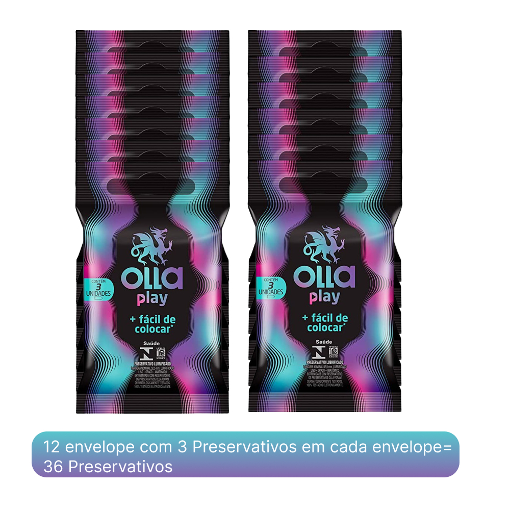 Kit 36 Preservativo camisinha Lubrificado Olla Play + Fácil De Colocar Bem estar sexual