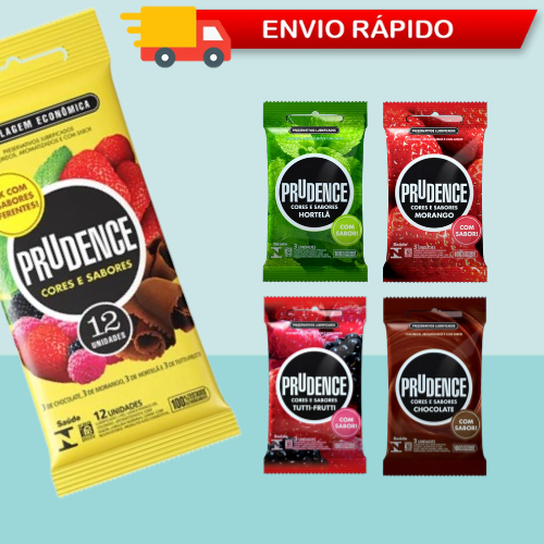 Kit 12un Camisinha Preservativo Masculino Aromatizado Colorido com Sabor Morango Hortelã Chocolate Tuti Fruti Prudence