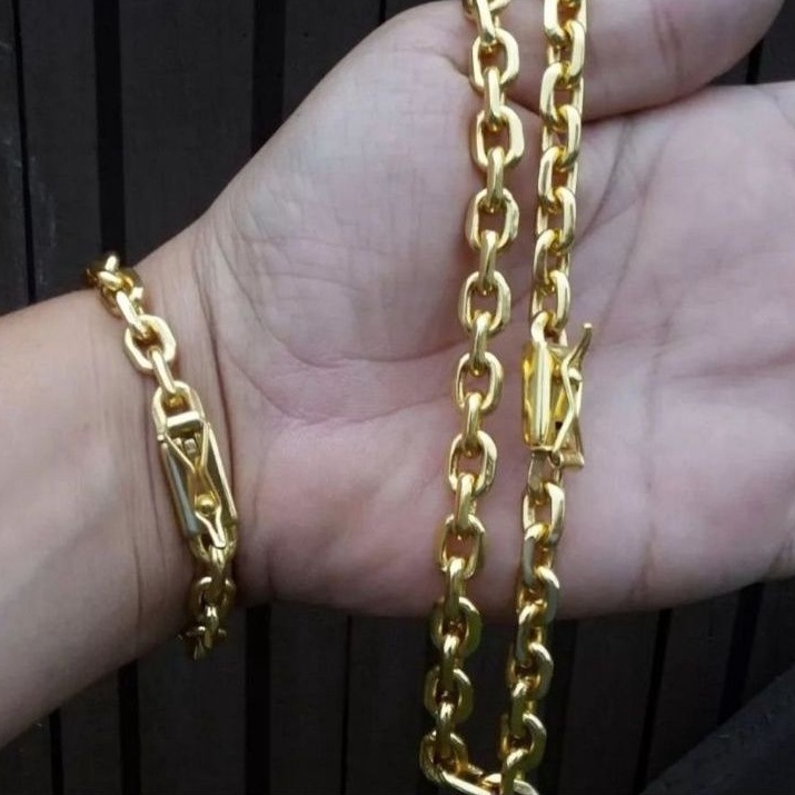 Corrente Cordão Masculino Moedas Antigas Banhado a ouro 18k Cadeado Quina 5mm C Com Garantia1 ano