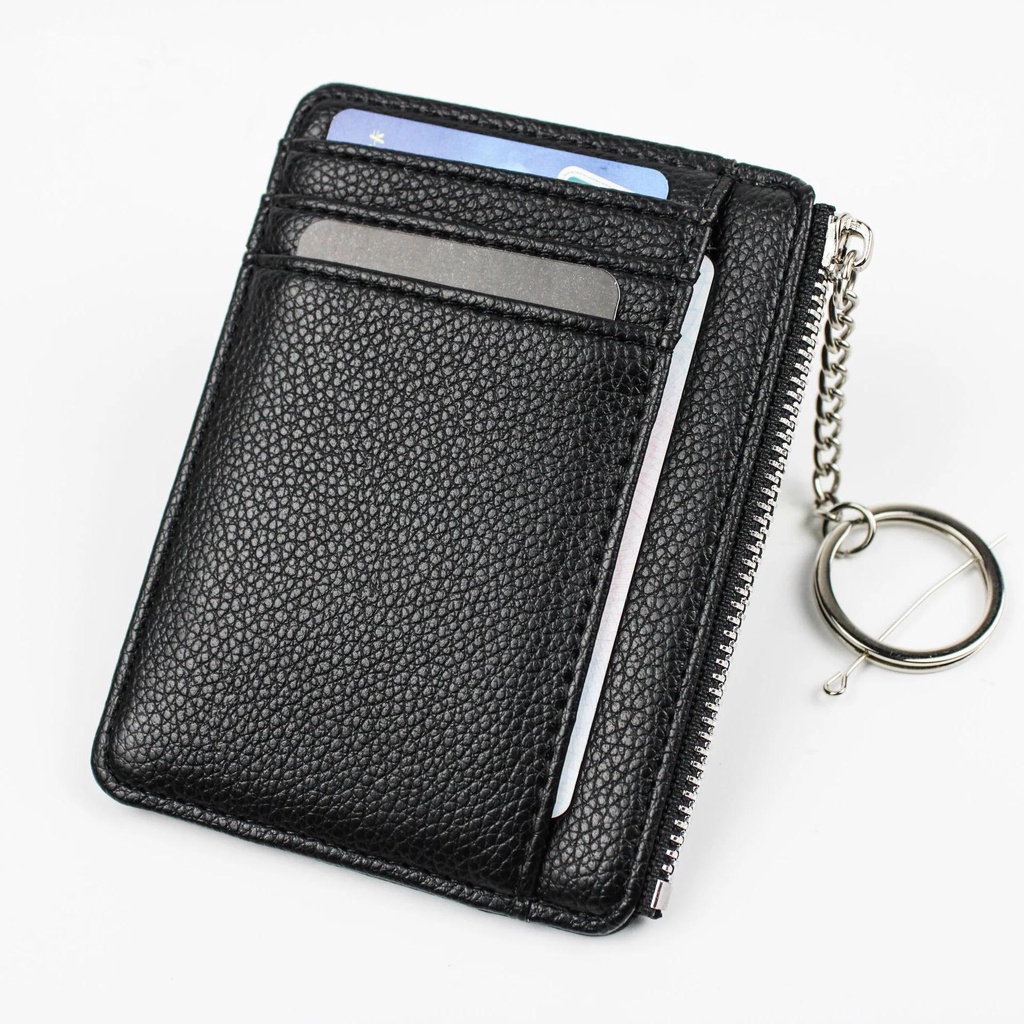 Novo Porta-Carteira Slim Cartões De Crédito De Cartão Moedas Com Anel De Zíper Mini Bolsa De Couro Para Homem Mulher 4 Cores