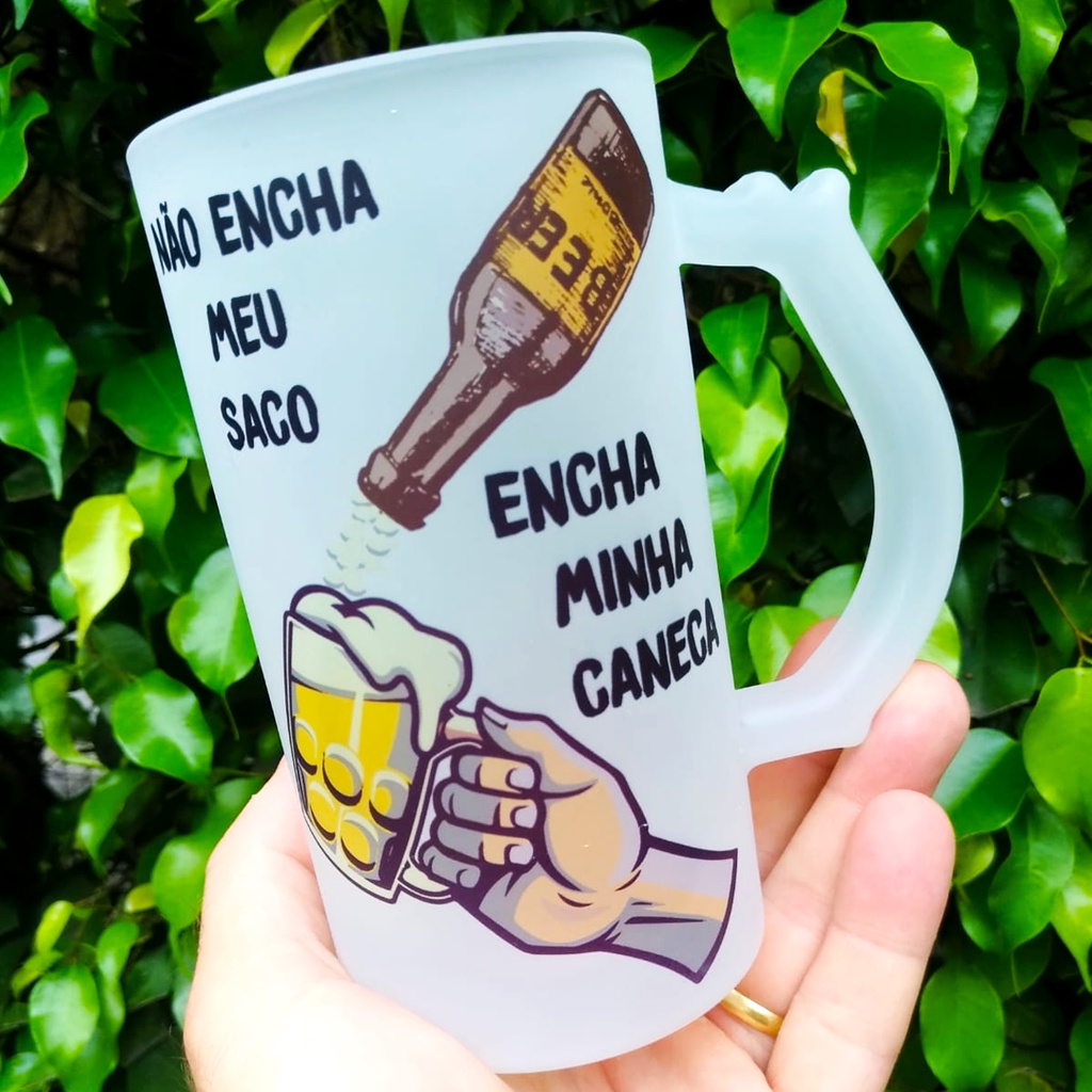 Caneca de CHOPP Cerveja Personalizada Vidro Jateada 500 ML