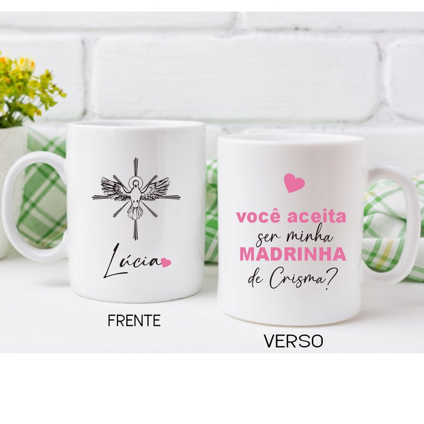 Caneca Madrinha e Padrinho de Crisma - Consagração - Batismo - Porcelana Personalizada 325 ML