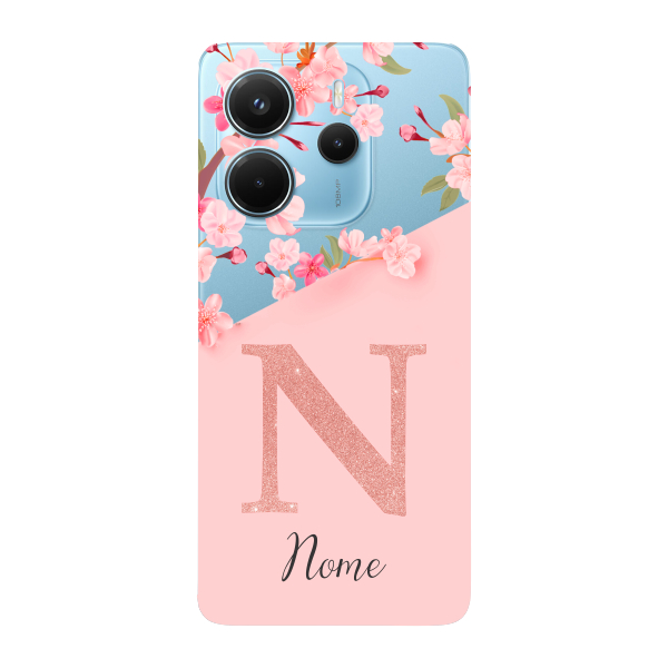 Capinha para Xiaomi RedMi Note 14 4G Anti Impacto Personalizada - Delicate Flowers Rosa com nome e inicial