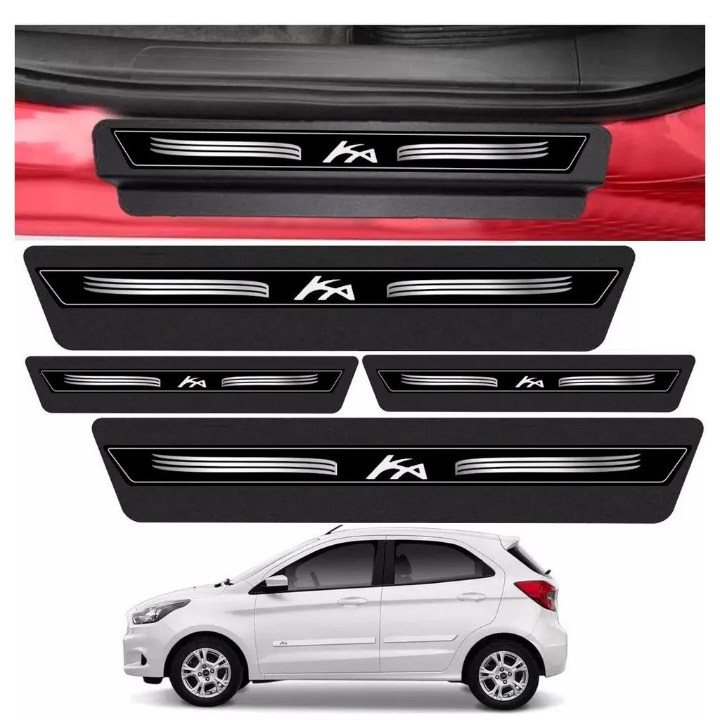 Kit 8 Peças Adesivo Soleira Proteção Porta Ford Novo Ka Hatch Sedan - Preto